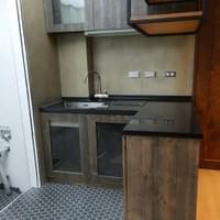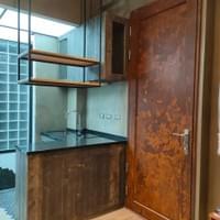 這場設計中,我們大膽運用了帶有歲月痕跡的仿鏽鐵門作為空間序曲,與沈穩的後製清水模牆面對話。