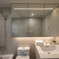 從客廳的懸空收納櫃,到臥室裡柔軟的亞麻織品,每一處細節都展現了「輕盈」的生活哲學。當夜幕低垂,暖色調的間接照明亮起,洗牆的光影與木質紋理交相輝映,讓忙碌一整天的身心,在踏入家門的那一刻,便獲得最溫柔的釋放。